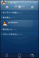 登録した友人のステータスが画面に表示されます。ログイン状態 (オンラインかどうか) が一目で確認できます。