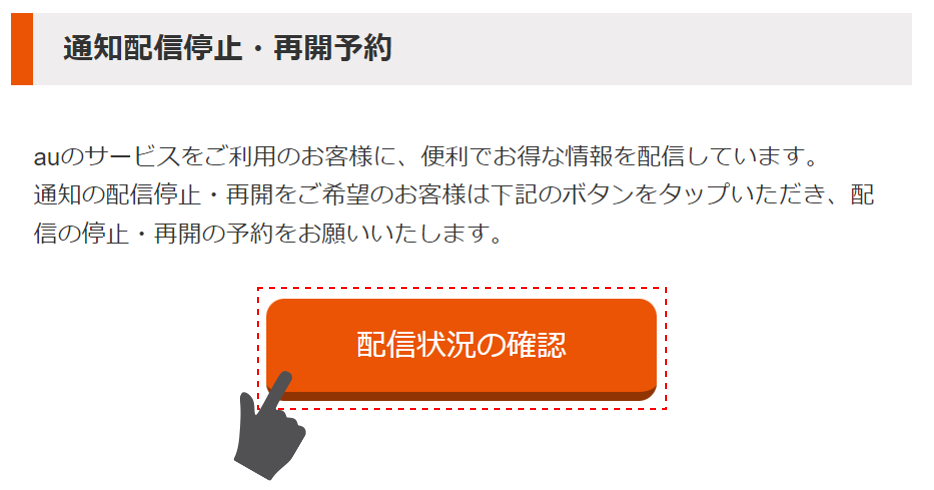 「通知配信停止・再開予約」というページが表示されましたら、「配信状況の確認」をクリックしてください。