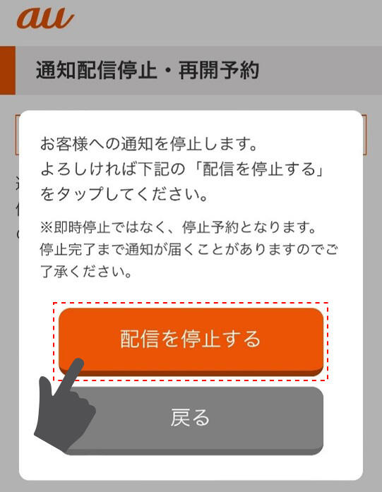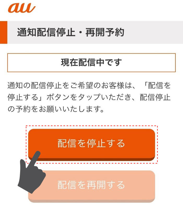 「お客さまへの通知を停止します。」と表示されましたら、「配信を停止する」をクリックしてください。
