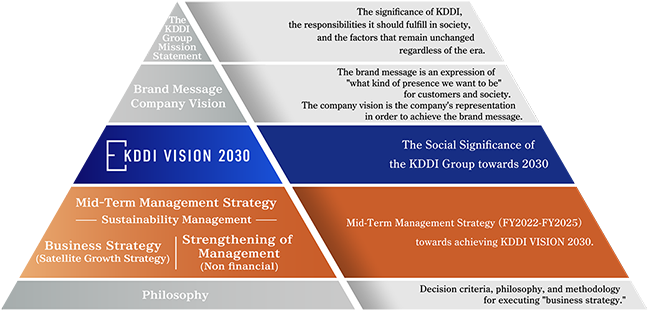 Amidst the rapidly changing business environment, KDDI has raised new "KDDI VISION 2030: The creation of a society in which anyone can make their dreams a reality,