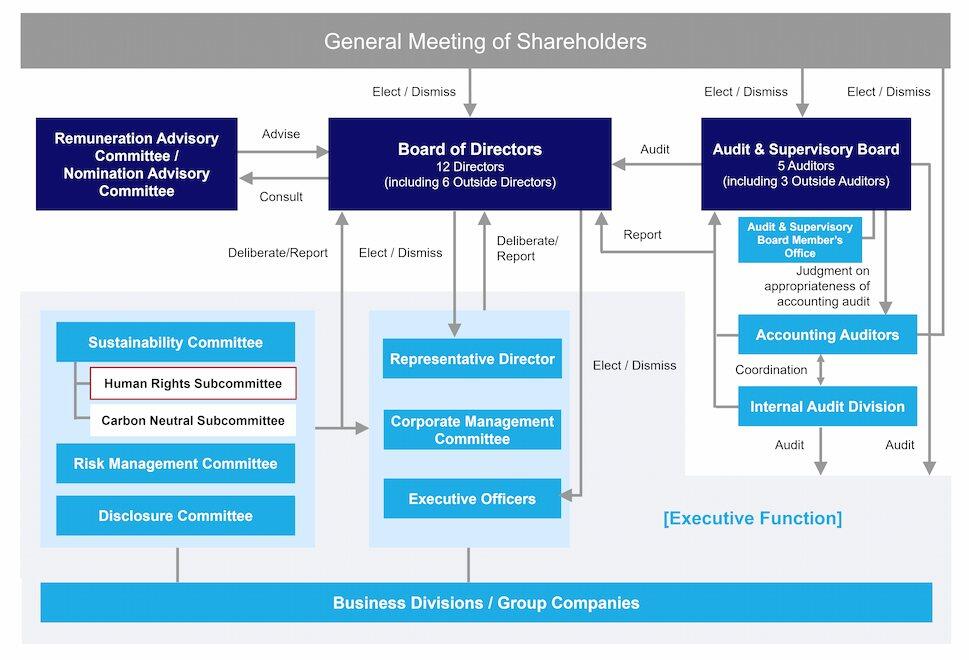 We have also set up the Human Rights Subcommittee (which convenes twice a year) under the Sustainability Committee. The Subcommittee functions as an organization to propose and discuss the human rights issues of the entire KDDI Group and is headed by the General Manager of the Sustainability Management Division.