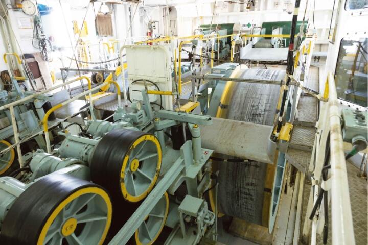 自動定点針路保持装置やコンピューター制御で海底ケーブルを繰り出すケーブルエンジンなどの高性能の操船設備とケーブルハンドリング設備を持ち、一度に最大約4,500㎞のケーブルを搭載。連続50日間の敷設工事を可能としました。