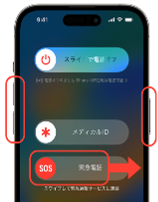 「緊急SOS」のスライダーが表示されるので、左から右にスワイプしてください。