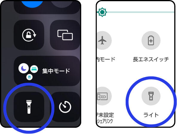 iPhoneや Android のLEDライト(懐中電灯)を使って、簡易的に明かりを確保できます。