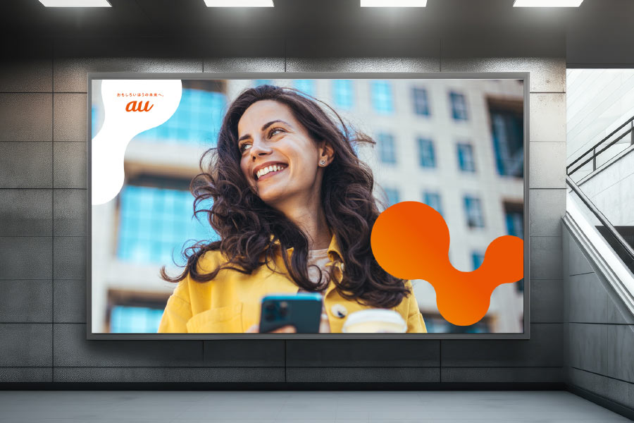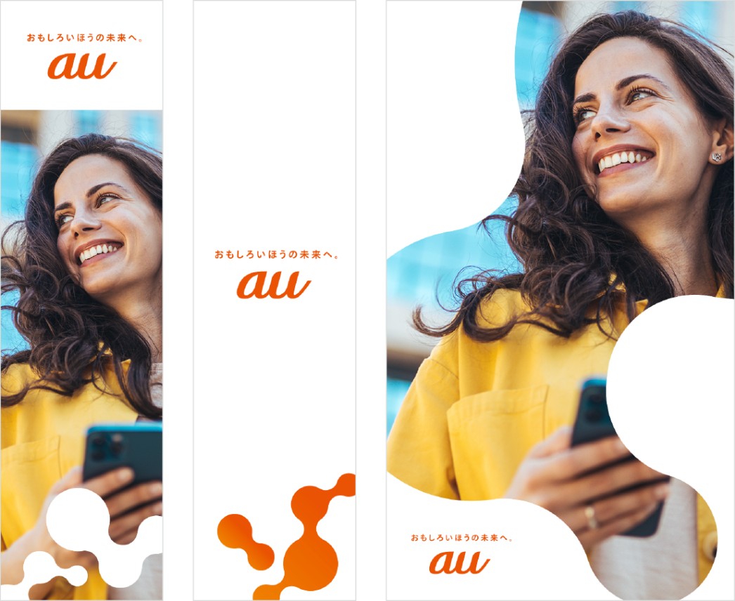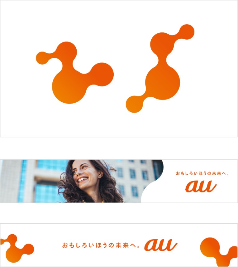 「つぎつぎと生まれる好奇心」「広がる可能性」「auとお客さまがつながる楽しさ」=「おもしろいほうの未来」を表しています。