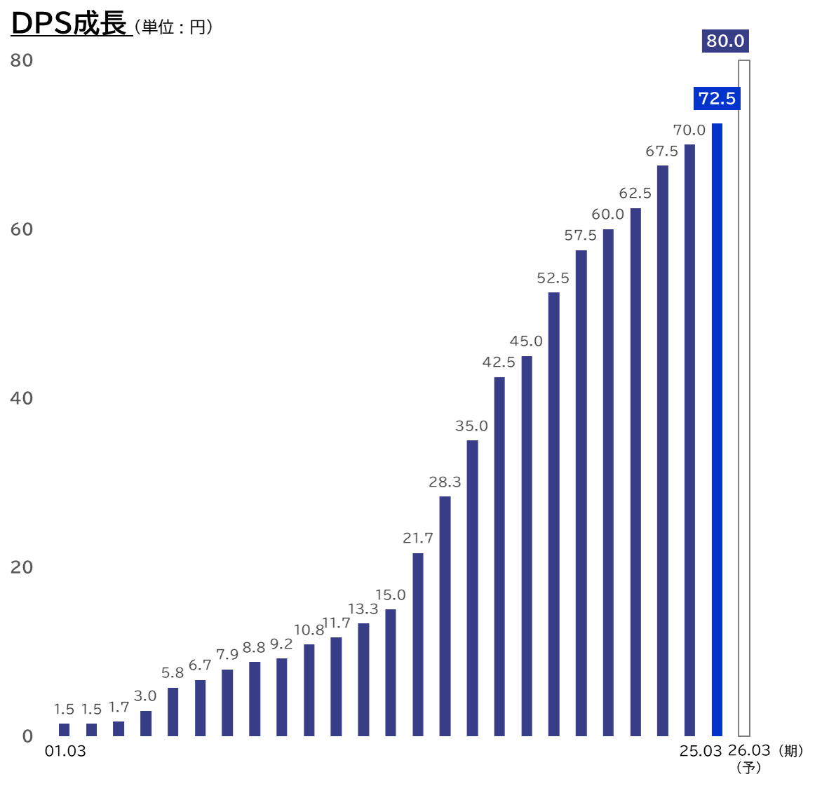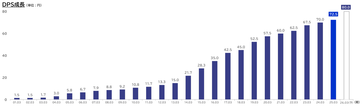 1株あたり配当金80円(7.5円増)、24期連続DPS成長を目指す