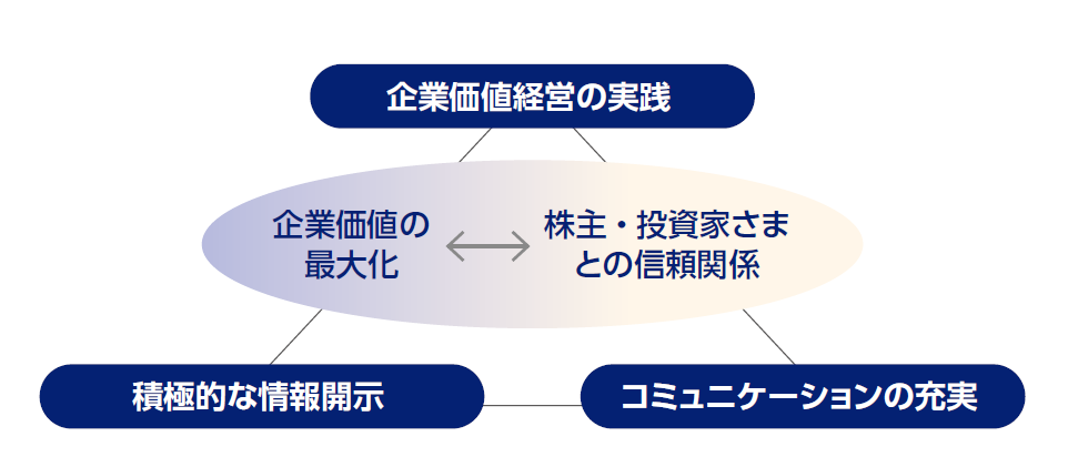 KDDIは、株主・投資家の皆さまとの信頼関係の構築を経営の最重点事項と位置付け、企業価値経営の実践、積極的な情報開示、コミュニケーションの充実をお約束いたします。