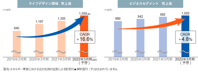 ライフデザイン領域・ビジネスセグメントの売上高ともに中期経営計画達成に向けて順調な進捗