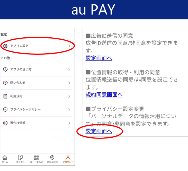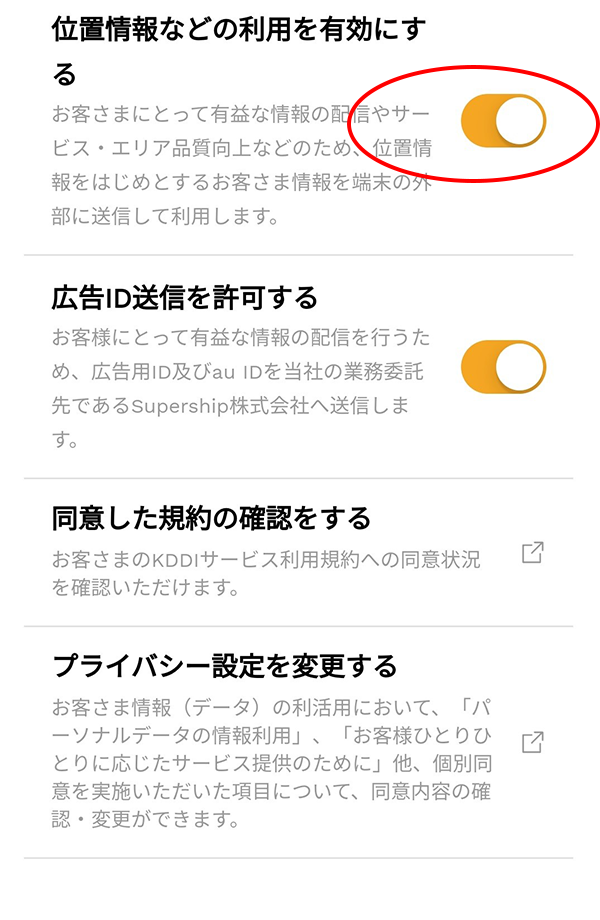 位置情報の提供・活用の停止をご希望されるお客さまは、位置情報毎に設定変更が可能です。