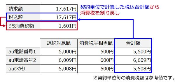 - KDDIが適格請求書を発行する他社サービスの料金に対する消費税額