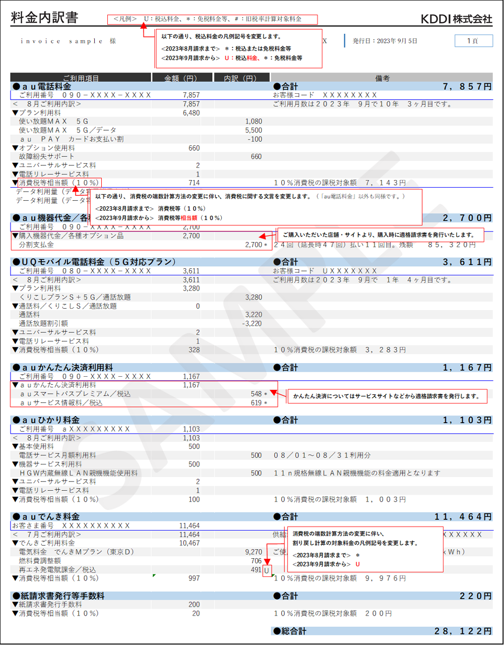 - PDFは、My au/My UQ mobileへログインの上、WEB de 請求書からダウンロードしてください。