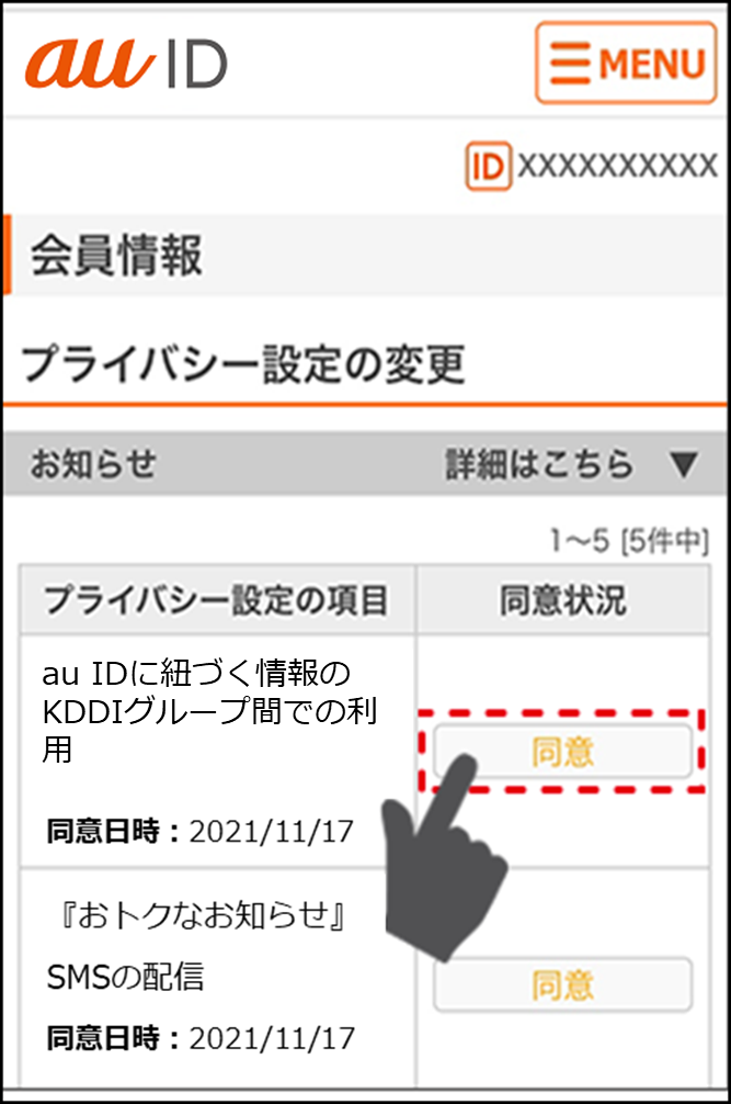 au IDに紐づく情報のKDDIグループ間での利用