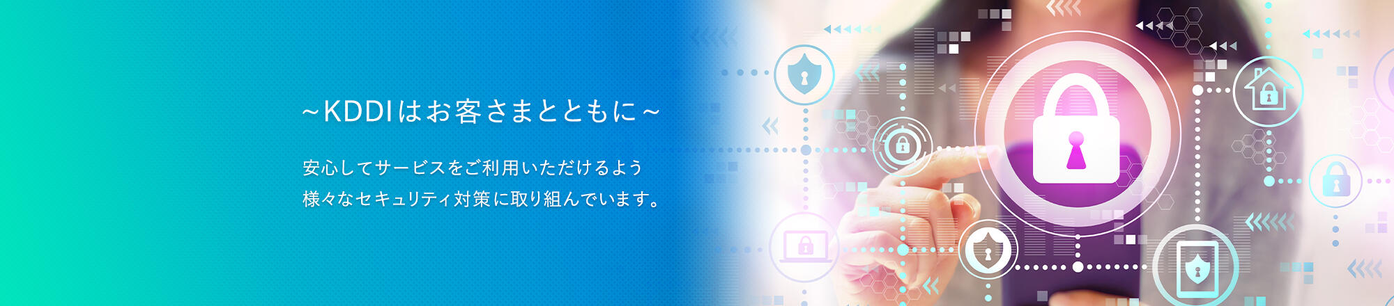 KDDIは、お客さまに安心・安全にサービスをご利用いただくために、様々な情報セキュリティへの取り組みを実施しております。