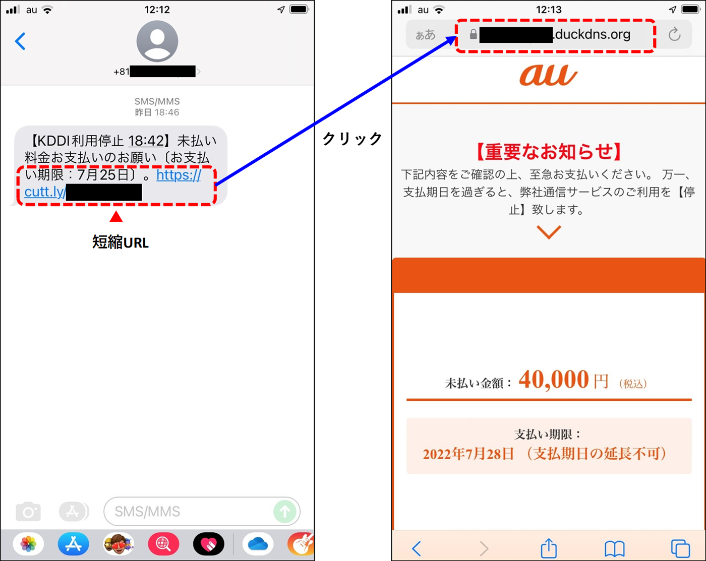 攻撃者はこの機能を悪用し、フィッシングサイトや詐欺サイトに誘導することが非常に多く行われています。したがって、「身に覚えのない」SMSやメールに記載のリンク先には不用意にアクセスしないようにしましょう。