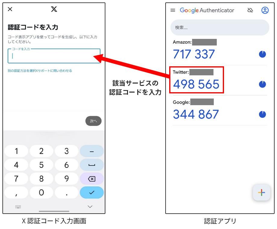 サービスに認証アプリの設定を行うと、ログインIDとパスワード入力後に認証コードの入力が求められるようになります。認証アプリをから認証コードを確認し、入力することでログイン可能となります。