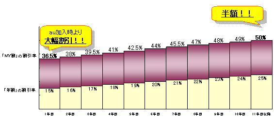 ●「MY割」割引率グラフ (CDMA 1X WINの場合)