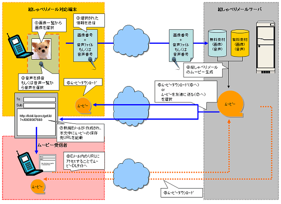 受信側がメール本文に表示されたURLにアクセスすることで、「絵しゃべりメール」のムービーをダウンロードしていただけます。