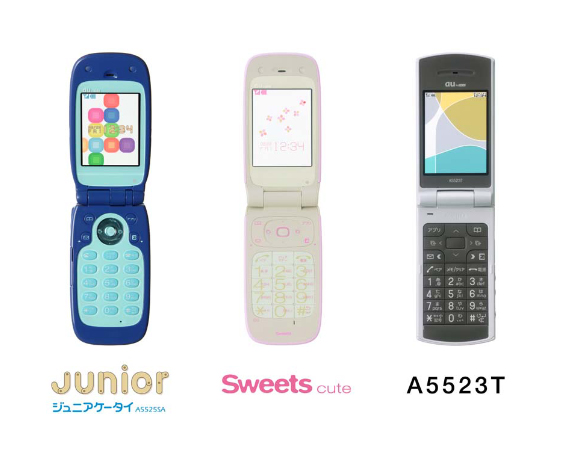 1)、2)、3): A5523T、Sweets cute、ジュニアケータイ A5525SA