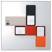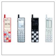 「au design project」第5弾の携帯電話。プロダクトデザイナー深澤直人氏とのコラボレーションによるもので、積み木のように四角いシンプルなカタチに、赤色LEDのデジタル表示が美しく浮かび上がるのが特徴です。