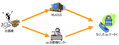 あらかじめ専用の「ケータイ探せて安心アプリ」をダウンロードし、設定を行っておくことにより、au携帯電話を紛失した際に携帯電話の凡その在り処をPCから検索することが可能です。また、検索中はマナーモード設定に関わらずau携帯電話からお知らせ音が鳴動しますので、その音を手がかりに部屋の中のどこにau携帯電話があるかを探すこともできます。