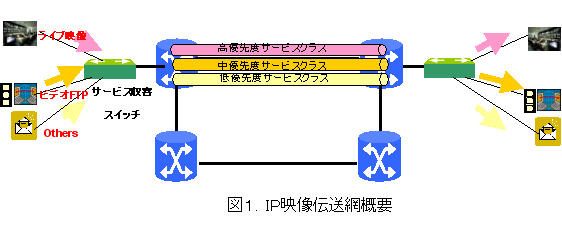 MPLS技術による帯域予約機能 (RSVP-TE) とQoS技術であるDiffserv機能を連携させることにより、QoSクラスごとに帯域幅を予約しその中でさらにDiffservにもとづいた優先制御を行う。
