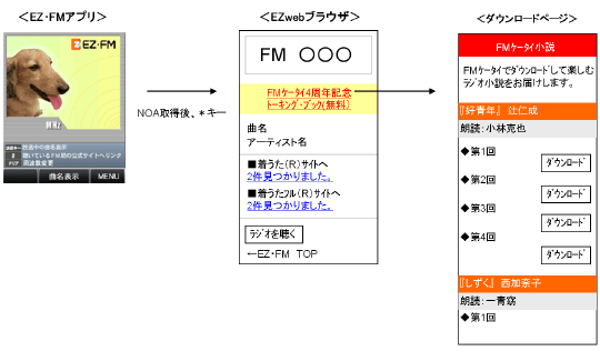 〈お知らせ〉 「FMケータイ4周年記念」全国民放FM53社、KDDI、ディーツーコミュニケーションズがFMケータイの特性を活かしたコラボレーション企画ラジオ小説 "トーキング・ブック" を12月3日から28日まで連続配信〈参考1〉