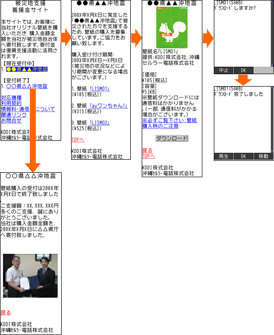 〈参考: 災害時ナビについて〉 日本全国の広域避難所や主要道路などの地図を携帯電話にプリセットした上で、StandaloneGPSを活用し、災害時など通信ができない状態でも利用料無料で自分の現在位置を測位することで最寄りの避難スポットまでの方向や距離を知ることができるサービスです。