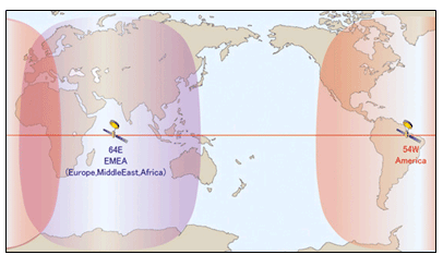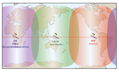2005年3月に1号機、11月に2号機の衛星が打ち上げられました。日本を含む太平洋域をカバーする3号機は2008年8月19日 (火) に打ち上げられ、本年2月25日 (水) からは全世界でサービスをご利用いただけます。