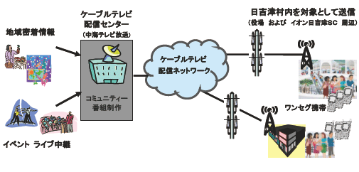 実験では、地元のケーブルテレビ会社である中海テレビ放送のコミュニティチャンネル (ケーブルテレビの自主番組) や、日吉津村役場やイオン日吉津SCなどと連携した特別編成番組、関連イベントの生中継などを送信し、皆様がお持ちのワンセグ端末でご覧いただきます。