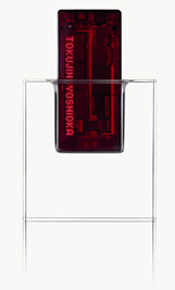 透明ケース越しにかすかに見えるプリント基板や集積回路といった電子部品。それらの形や色、配置にいたるまで、内部の構造までもデザインすることによって生み出された、これまでにない存在感を放つ携帯電話です。また、材料メーカーとガラス繊維メーカーが共同開発した新素材を使用し、美しい透明度と深い質感を実現しました。