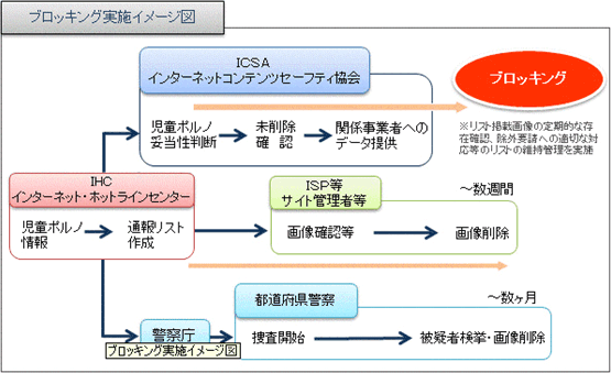 - ブロッキングの対象となるサイトは、一般社団法人インターネットコンテンツセーフティ協会が提供する「児童ポルノ掲載アドレスリスト」に指定されたサイトとなります。