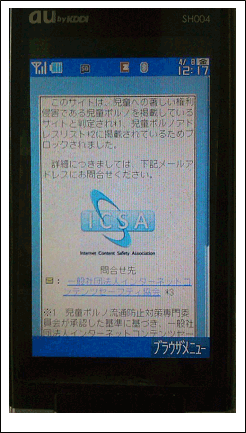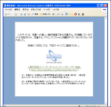 児童ポルノ・ブロッキング適用時に以下の画面が表示されます