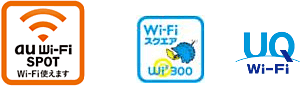 「au Wi-Fi SPOT」サービスは、「au Wi-Fi SPOT」のステッカーがある場所のほか、株式会社ワイヤ・アンド・ワイヤレスが提供する「Wi-Fiスクエア」およびUQコミュニケーションズ株式会社が提供する「UQ Wi-Fi」のステッカーのあるスポットでもご利用いただけます。