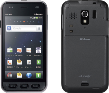 Eメール (~@ezweb.ne.jp) やCメール、赤外線通信といったビジネスの基本機能を搭載。さらに、IPX5 (注3) /IPX7 (注4) 等級の防水性能、IP5X等級 (注5) の防塵性能により、雨や埃などのハードなビジネスシーンでも安心して利用が可能です。