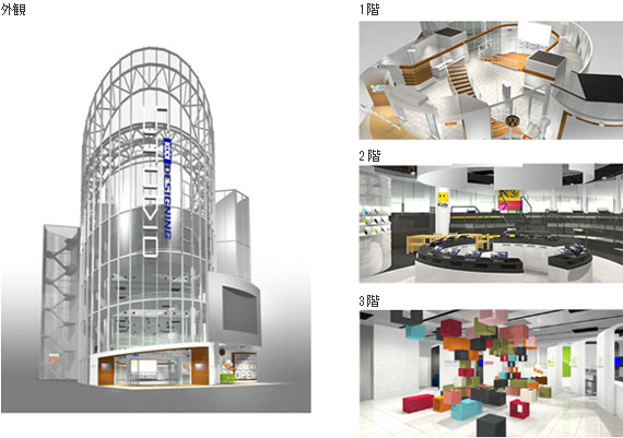 | 1階 | 様々な展示を行うスペースです。9月30日以降は、最新のスマートフォンに触れることができます。さらにステージでは、ライブ、お笑い、ダンスなど、さまざまなイベントを開催します。 また、日本で唯一のLISMOオリジナルグッズを販売するLISMO FORESTが4階から移動し、リニューアルにあわせ、新商品も発売します。 |