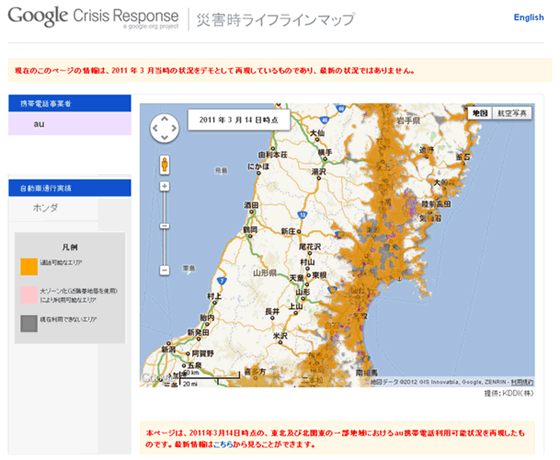 「Google災害時ライフラインマップ」およびauホームページから同じ情報を閲覧することが可能になります。