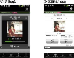 「LISMO Store」で提供する楽曲は全て試聴が可能です。気になる楽曲は、すぐに試聴ができ、ほしい楽曲は面倒な手続きなく、auかんたん決済やauポイントを利用して購入が可能です。