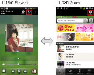 さらに、今後発売されるLISMO対応機種向け「LISMO Player」ではワンタッチで「LISMO Store」を表示する「ストアボタン」を設置します。これにより、楽曲の再生機能と購入機能をかんたんに切替えてのご利用が可能となります (注2) 。