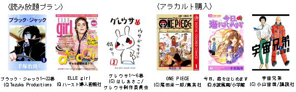 コミックや写真集など総額30万円相当 (注2) の書籍が読み放題となる「読み放題プラン」と約12,000冊の中から読みたい書籍を1冊ごとに購入する「アラカルト購入」の2通りの楽しみ方で、手軽に電子書籍をご利用いただけるサービスです。