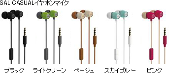 | SAL CASUALイヤホンマイク | ・ブラック ・ベージュ ・スカイブルー ・ピンク ・ライトグリーン |