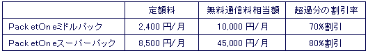 《「PacketOneミドルパック」を組み合わせた場合のパケット通信料》