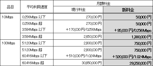 月額変動料金は1ヶ月間の平均通信速度を測定して請求料金を決定します。平均通信速度は、ある一定の時間に利用した総トラヒックをその時間で割ったものの1ヶ月の平均です。