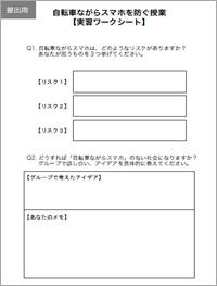 学校の先生ご自身で簡単に授業を実施することができ、また生徒は、社会課題である「自転車ながらスマホ」をリアルに体験しながら、その危険性や問題点を考えることができます。