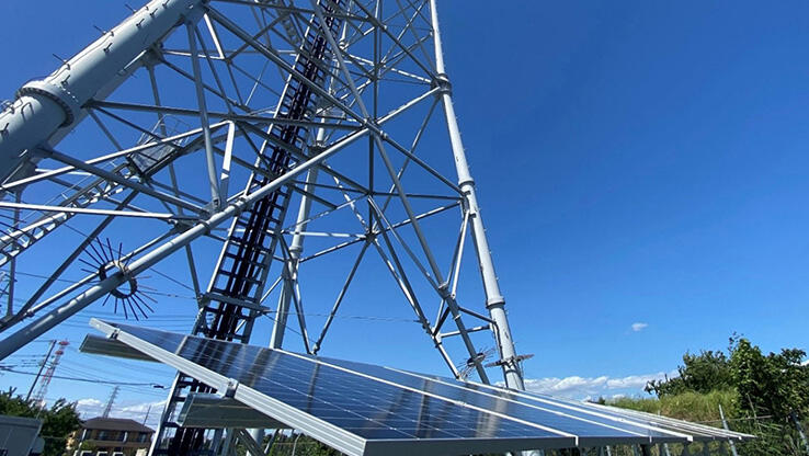 KDDIは2013年11月よりCO2排出量削減への寄与を目的として太陽光発電事業を開始しました。国内4ヵ所7施設の自社保有地の一部に太陽光発電設備を建設、「再生可能エネルギーの固定価格買取制度」に基づき、発電した電力を電力会社に販売しています。
