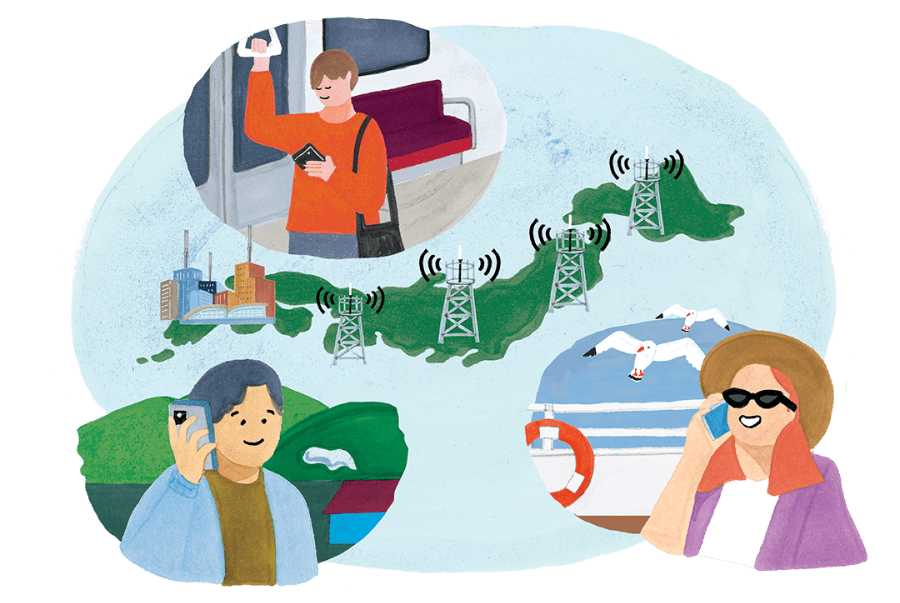 毎日の生活になくてはならない“通信”。携帯電話はもちろん、あらゆるモノがネットワークにつながることで、私たちの生活は一層便利になってきました。KDDIは、どこにいても快適に通信をご利用いただけるよう、全国で“つながる”エリアを拡大し、また、安心してご利用いただけるよう、24時間365日安定した通信環境を提供しています。