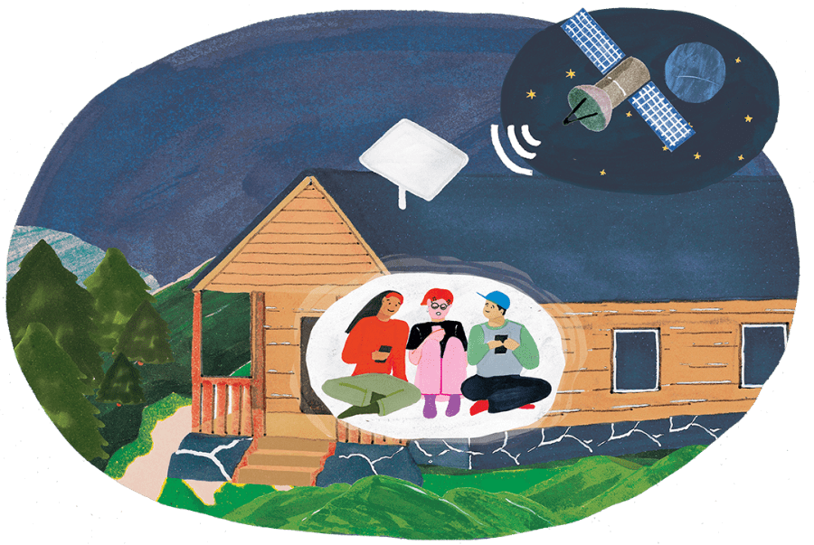 KDDIは、業務提携した米国のSpace Exploration Technologies(スペースX)社の衛星ブロードバンド「Starlink」を活用し、「日本のどこにいても、つながらないがなくなるように」を実現するため、これまで地理的条件により基地局の設置が難しかった山間部や島しょ部、海上などにも安定した通信環境を整備しています。今後はさらに、スマートフォンが衛星と直接つながることで、「空が見えれば、どこでもつながる」体験を提供していきます。