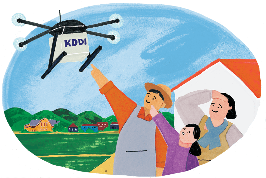 近年、地域の過疎化・高齢化が進む地方都市。さらに交通サービスやインフラの整備・維持が難しいという課題も。特に中山間地域では食料品などの生活必需品の入手も困難な「買い物弱者」が増加しつつあります。そこで注目されているのがドローンです。KDDIは、運航管理システムを開発し、ドローンによる運搬が地域に定着できるよう実用に向けて開発を進めています。