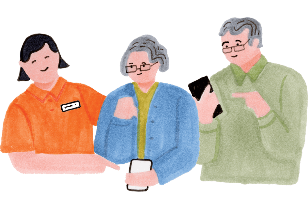 スマートフォンは、いまやコミュニケーションツールだけでなく、キャッシュレス決済や電子証明書の発行など、生活に欠かせない社会インフラとなっています。年齢やITリテラシーの有無がその制限にならないよう、KDDIではスマートフォンを持っていただいたあとの活用支援まで広くサポートしています。