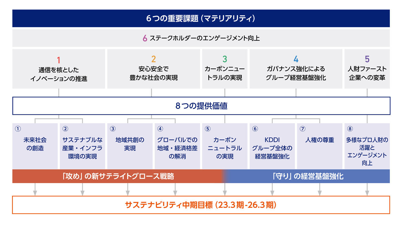 - 6KDDIグループ全体のガバナンス強化による強固な経営基盤の確立を通じて、社会・環境価値を創出する