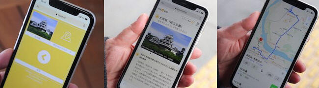 駅のポスターにスマホをかざせば、周辺の観光施設の情報も検索可能。AppleやGoogleのマップ機能と連携し、最寄り駅からのルート案内なども可能です。